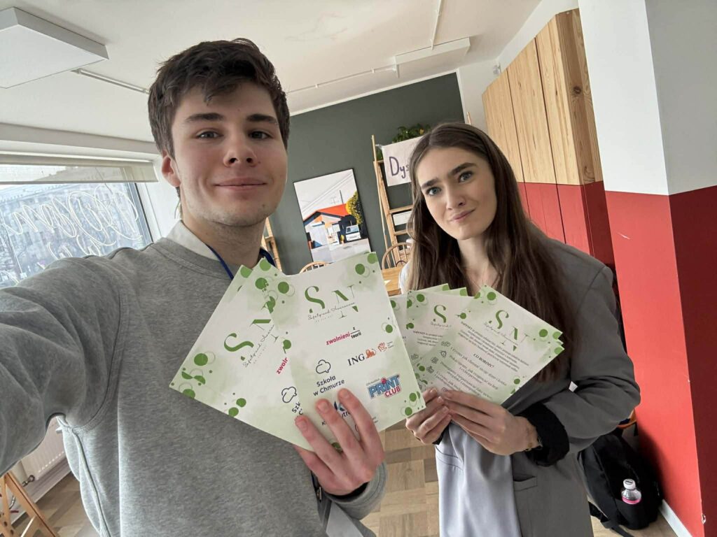 Members of the Entrepreneurship and Intercultural Communication Student Research Club, together with a high school student from “Szkoła w Chmurze”, had the opportunity to take part in an event organized for the “Szkoła w Chmurze” community at “Dom w Alejach” in Warsaw. The meeting brought together students engaged in social projects and preparing for subject-based olympiads.